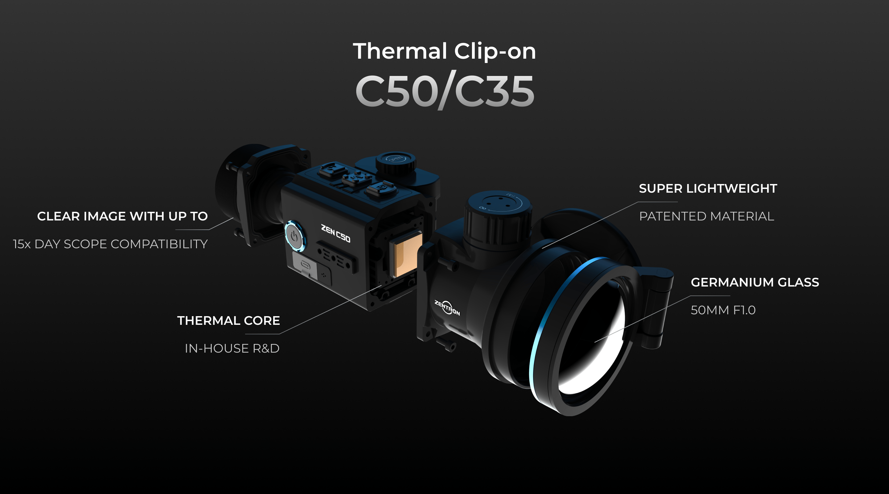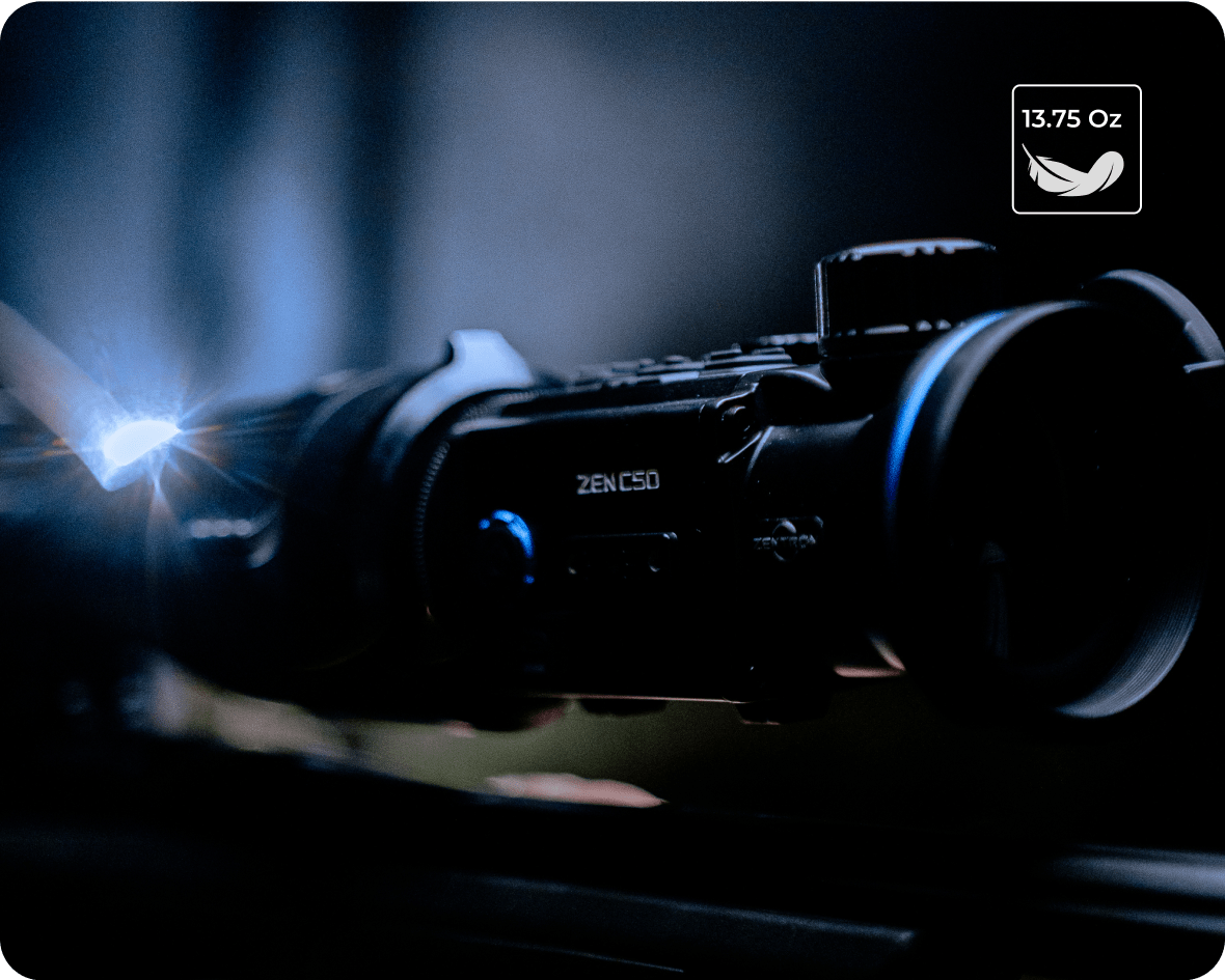 ZEN C50 is a lightweight and compact thermal imaging device. The weight of ZEN C35 is 14.46 Oz, and the weight of ZEN C50 is 13.75 Oz.